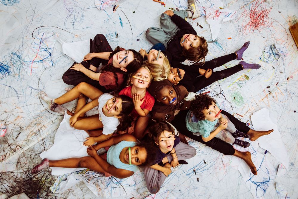 “Choreography actually means: drawing in space,” explains Lisbeth Gruwez, the choreographer of WASCO!. And that’s exactly what you can do in this drawing corner. Not with paint or wax crayons like in the performance, but with coloured pencils on large sheets of paper.